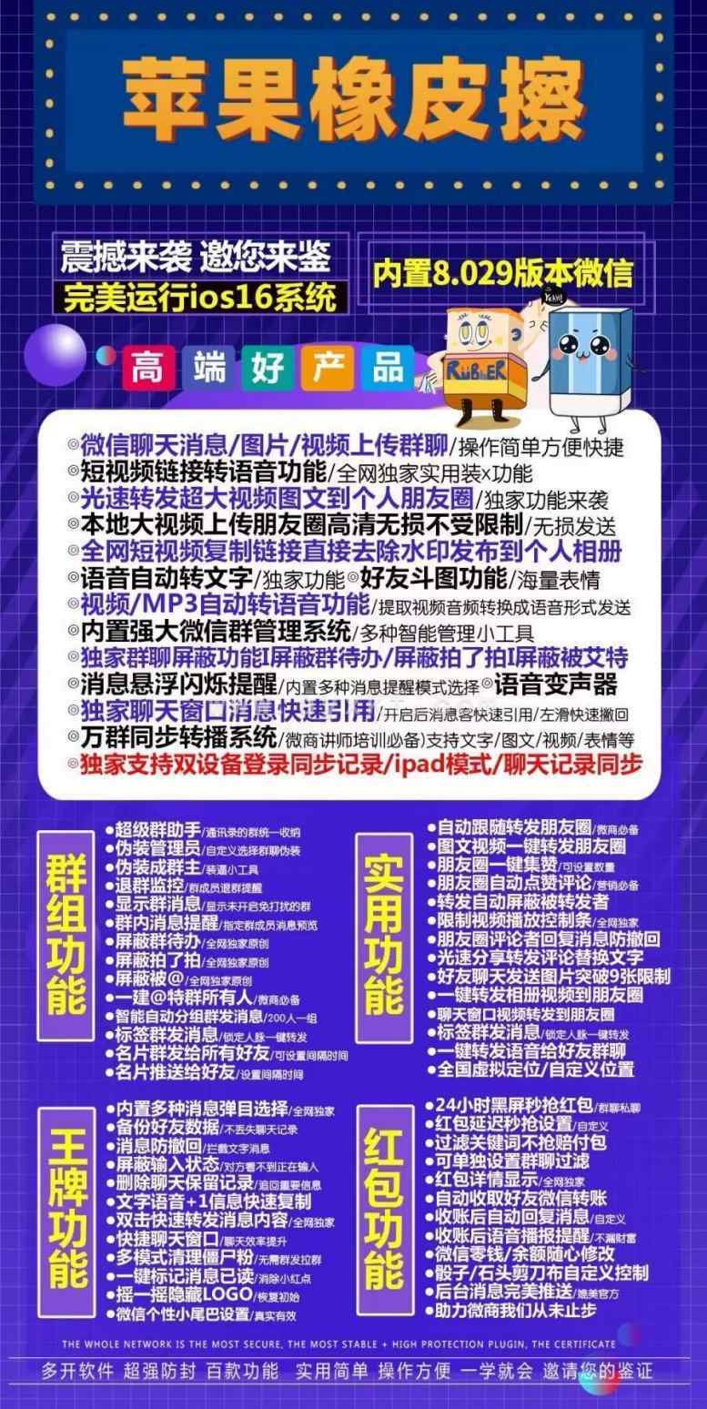 【苹果橡皮擦官网下载更新官网激活码激活授权码卡密】支持最新ios16系统《虚拟定位抢红包》微信多开